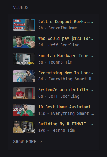 # Configuring Glance - [Preconfigured page](#preconfigured-page) - [The config file](#the-config-file) - [Auto reload](#auto-reload) - [Environment variables](#environment-variables) - [Including other config files](#including-other-config-files) - [Server](#server) - [Document](#document) - [Branding](#branding) - [Theme](#theme) - [Themes](#themes) - [Pages & Columns](#pages--columns) - [Widgets](#widgets) - [RSS](#rss) - [Videos](#videos) - [Hacker News](#hacker-news) - [Lobsters](#lobsters) - [Reddit](#reddit) - [Search](#search-widget) - [Group](#group) - [Split Column](#split-column) - [Custom API](#custom-api) - [Extension](#extension) - [Weather](#weather) - [Monitor](#monitor) - [Releases](#releases) - [Docker Containers](#docker-containers) - [DNS Stats](#dns-stats) - [Server Stats](#server-stats) - [Repository](#repository) - [Bookmarks](#bookmarks) - [Calendar](#calendar) - [Calendar (legacy)](#calendar-legacy) - [ChangeDetection.io](#changedetectionio) - [Clock](#clock) - [Markets](#markets) - [Twitch Channels](#twitch-channels) - [Twitch Top Games](#twitch-top-games) - [iframe](#iframe) - [HTML](#html) ## Preconfigured page If you don't want to spend time reading through all the available configuration options and just want something to get you going quickly you can use [this `glance.yml` file](glance.yml) and make changes to it as you see fit. It will give you a page that looks like the following:  Configure the widgets, add more of them, add extra pages, etc. Make it your own! ## The config file ### Auto reload Automatic config reload is supported, meaning that you can make changes to the config file and have them take effect on save without having to restart the container/service. Making changes to environment variables does not trigger a reload and requires manual restart. Deleting a config file will stop that file from being watched, even if it is recreated. > [!NOTE] > > If you attempt to start Glance with an invalid config it will exit with an error outright. If you successfully started Glance with a valid config and then made changes to it which result in an error, you'll see that error in the console and Glance will continue to run with the old configuration. You can then continue to make changes and when there are no errors the new configuration will be loaded. > [!CAUTION] > > Reloading the configuration file clears your cached data, meaning that you have to request the data anew each time you do this. This can lead to rate limiting for some APIs if you do it too frequently. Having a cache that persists between reloads will be added in the future. ### Environment variables Inserting environment variables is supported anywhere in the config. This is done via the `${ENV_VAR}` syntax. Attempting to use an environment variable that doesn't exist will result in an error and Glance will either not start or load your new config on save. Example: ```yaml server: host: ${HOST} port: ${PORT} ``` Can also be in the middle of a string: ```yaml - type: rss title: ${RSS_TITLE} feeds: - url: http://domain.com/rss/${RSS_CATEGORY}.xml ``` Works with any type of value, not just strings: ```yaml - type: rss limit: ${RSS_LIMIT} ``` If you need to use the syntax `${NAME}` in your config without it being interpreted as an environment variable, you can escape it by prefixing with a backslash `\`: ```yaml something: \${NOT_AN_ENV_VAR} ``` ### Including other config files Including config files from within your main config file is supported. This is done via the `!include` directive along with a relative or absolute path to the file you want to include. If the path is relative, it will be relative to the main config file. Additionally, environment variables can be used within included files, and changes to the included files will trigger an automatic reload. Example: ```yaml pages: !include: home.yml !include: videos.yml !include: homelab.yml ``` The file you are including should not have any additional indentation, its values should be at the top level and the appropriate amount of indentation will be added automatically depending on where the file is included. Example: `glance.yml` ```yaml pages: - name: Home columns: - size: full widgets: !include: rss.yml - name: News columns: - size: full widgets: - type: group widgets: !include: rss.yml - type: reddit subreddit: news ``` `rss.yml` ```yaml - type: rss title: News feeds: - url: ${RSS_URL} ``` The `!include` directive can be used anywhere in the config file, not just in the `pages` property, however it must be on its own line and have the appropriate indentation. If you encounter YAML parsing errors when using the `!include` directive, the reported line numbers will likely be incorrect. This is because the inclusion of files is done before the YAML is parsed, as YAML itself does not support file inclusion. To help with debugging in cases like this, you can use the `config:print` command and pipe it into `less -N` to see the full config file with includes resolved and line numbers added: ```sh glance --config /path/to/glance.yml config:print | less -N ``` This is a bit more convoluted when running Glance inside a Docker container: ```sh docker run --rm -v ./glance.yml:/app/config/glance.yml glanceapp/glance config:print | less -N ``` This assumes that the config you want to print is in your current working directory and is named `glance.yml`. ## Server Server configuration is done through a top level `server` property. Example: ```yaml server: port: 8080 assets-path: /home/user/glance-assets ``` ### Properties | Name | Type | Required | Default | | ---- | ---- | -------- | ------- | | host | string | no | | | port | number | no | 8080 | | base-url | string | no | | | assets-path | string | no | | #### `host` The address which the server will listen on. Setting it to `localhost` means that only the machine that the server is running on will be able to access the dashboard. By default it will listen on all interfaces. #### `port` A numbe